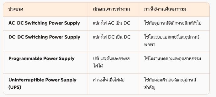 ประเภทของสวิตชิ่งเพาเวอร์ซัพพลาย