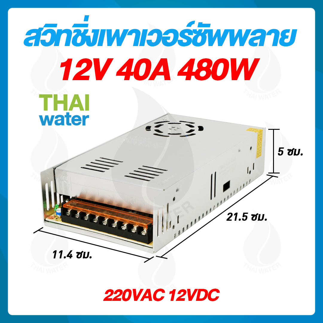 • สวิตช์ชิ่ง12V หม้อแปลงไฟฟ้า 220VAC 12VDC 40A กระแสไฟฟ้าสูงสุด : 40 A
