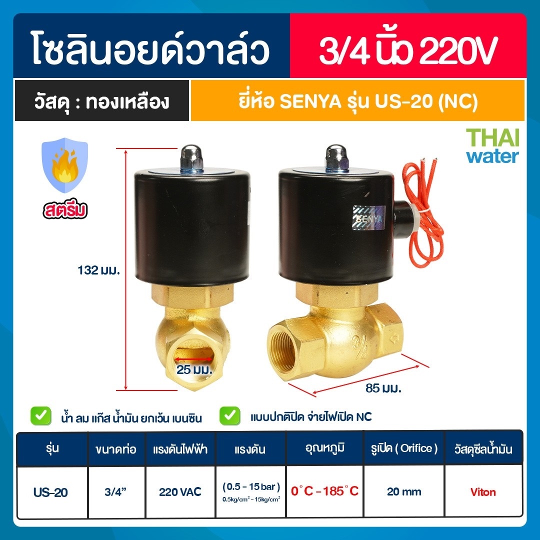 - โซลินอยด์วาล์วทองเหลือง แบบสตรีม : ขนาด 3/4" รุ่น US - 20