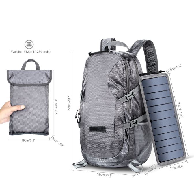 - กระเป๋าเป้โซล่าเซลล์ : เหมาะสำหรับฉาก: ขี่จักรยาน, แคมป์ปิ้ง, เดินป่า, ปีนเขา, นอกสถานที่, พักผ่อนรายวัน