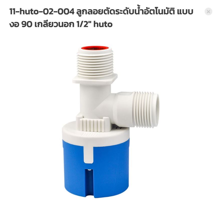 ชื่อสินค้า : ลูกลอยอัตโนมัติ วาล์วควบคุมระดับน้ำอัตโนมัติ แบบงอ 90 ขนาดเกลียวนอก 1/2" ( ยี่ห้อ HUTO )