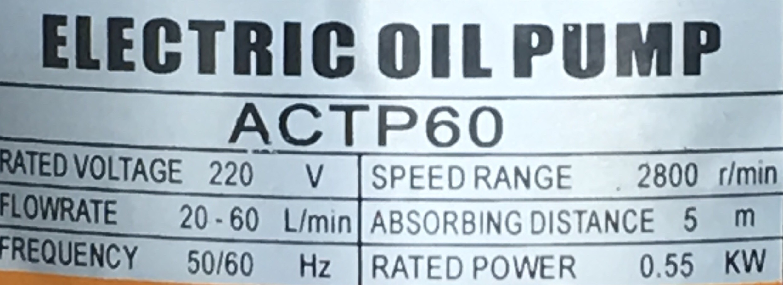 06-ACTP60-220V ปั๊มดูดน้ำมันดีเซล น้ำมันเครื่อง น้ำมันเครื่องจักร AC 220 โวลต์ 550 วัตต์ รุ่น ACTP60